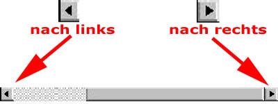 kann es vorkommen, dass sie größer als der Bildschirm sind. Sie können am rechten und am unteren Bildschirmrand erscheinen. Man kann mit diesen Balken den Bildschirminhalt horizontal oder vertikal verschieben. |