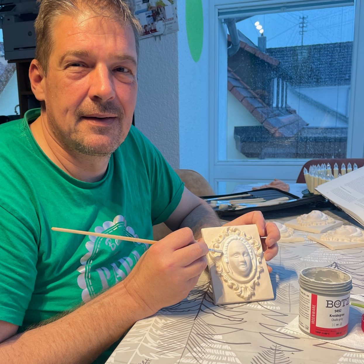 Vor zwei Jahren erhielt ich aus dem Nachlass von Hafnermeister Biehler nach und nach ein historisches Erbe: Zuerst übernahm ich die ersten alten Gipsformen, dann sein historisches Werkzeug und schließlich den alten Brennofen. Dieser eigene Ofen war ein echter Meilenstein, da ich plötzlich viel schneller und unabhängiger arbeiten konnte als zuvor in der VHS. Das Erbe war nicht der Startschuss für meine Arbeit mit Keramik, bildet indes ein massives Fundament für meine weitere Arbeit. Die lokale Historie der Formen hat mich sofort fasziniert. Seit Beginn 2026 berge ich nun Schritt für Schritt die restlichen Gipsformen, alten Werkzeuge und sogar historische Pappschachteln aus dem ältesten Haus bei uns im Dorf.